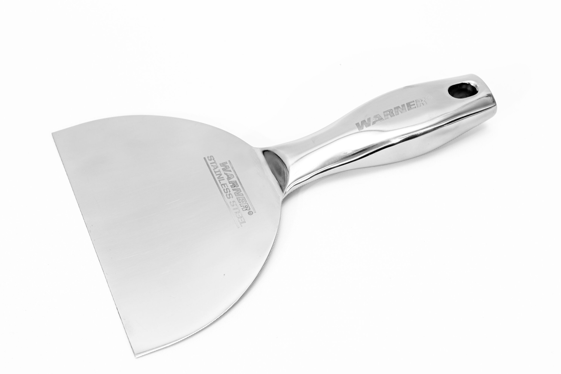 All stainless-steel rust resistant design. One-piece, polished handle and blade construction. Ergonomically designed handle with built in Hammer Cap™. Ground, polished, flexible blade. Easy clean up.