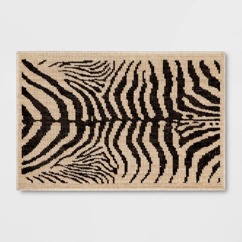Add the perfect finishing touch to any indoor space with this Woven Zebra Accent Rug from Threshold™. This rectangular accent rug features a zebra pattern on a woven backdrop in black and tan hues to …