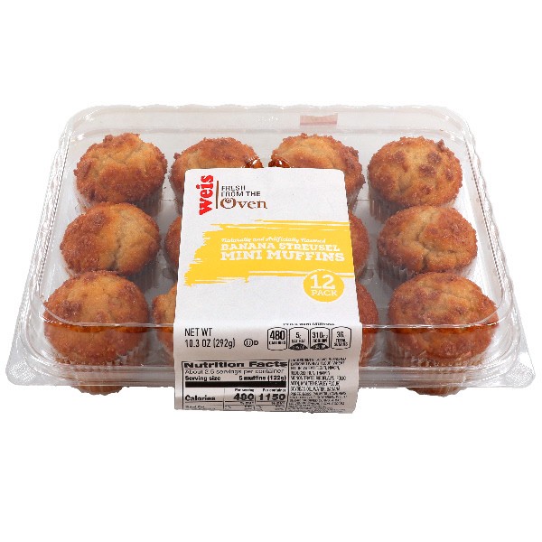 slide 1 of 1, Weis Fresh from the Oven Banana Streusel 12 Pack Mini Muffins, 10.3 oz