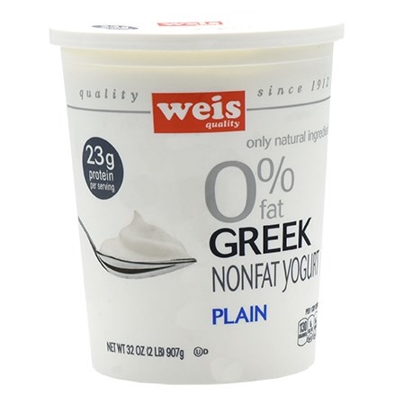 slide 1 of 1, Weis Quality Plain Greek Nonfat Yogurt, 32 oz