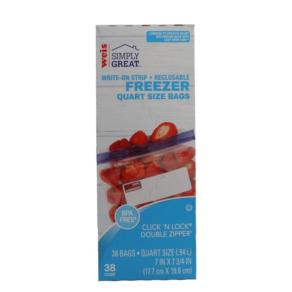 Weis Quality Quart Reclosable Zipper 38CT Freezer Bag