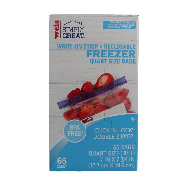 Weis Quality Quart Reclosable Zipper 65CT Freezer Bag