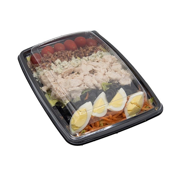 Chicken breast (water, salt sodium phosphate), Romaine lettuce, grape tomatoes, hard cooked eggs (eggs, water, citric acid, sodium benzoate, potassium sorbate), fully cooked bacon bits (cured with wat…