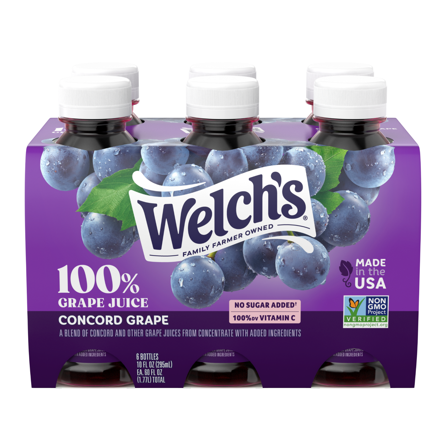 Welch's 100% Grape Juice, Concord Grape, 10 fl oz On-the-Go Bottle (Pack of 6)