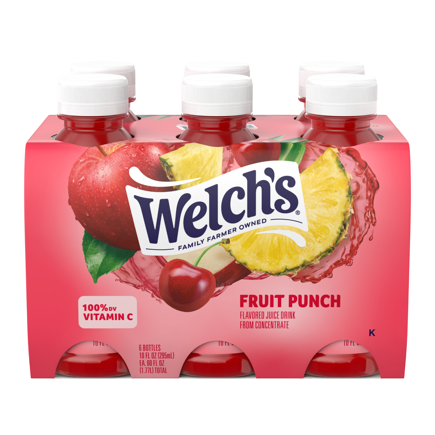 Welch's Fruit Punch Juice Drink, 10 fl oz On-the-Go Bottle (Pack of 6)