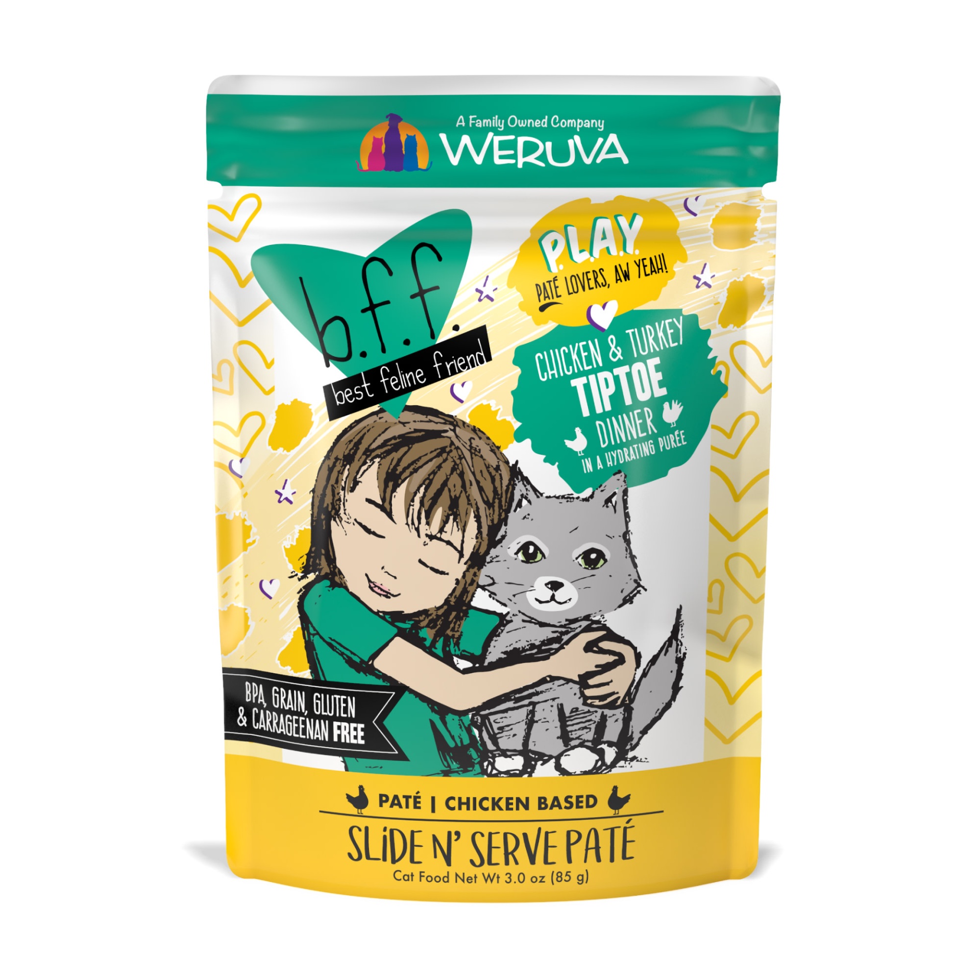slide 1 of 1, Weruva b.f.f.  Cat Play Tiptoe Pouch, 3 oz