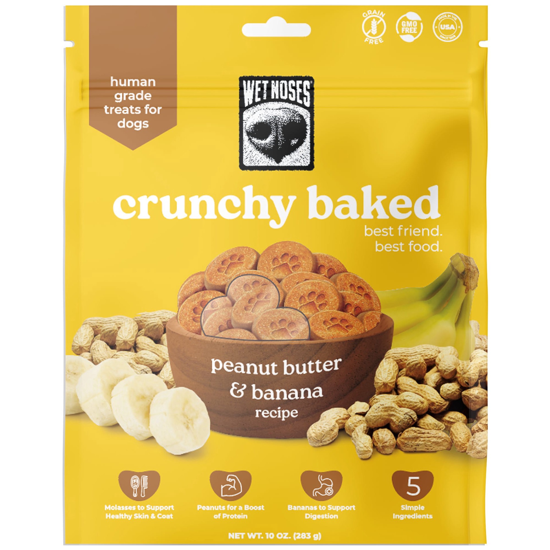 Wet Noses Grain-Free Peanut Butter and Banana Oven Baked Crunchy Treats for Dogs, 10 oz.