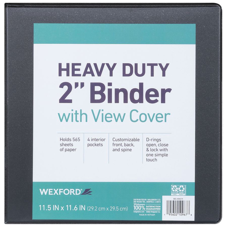 11.5 in x 11.6 in (29.2 cm x 29.5 cm). Holds 565 sheets of paper. 4 interior pockets. Customizable front, back, and spine. D-rings open, close & lock with one simple touch. walgreens.com. how2recycle.…