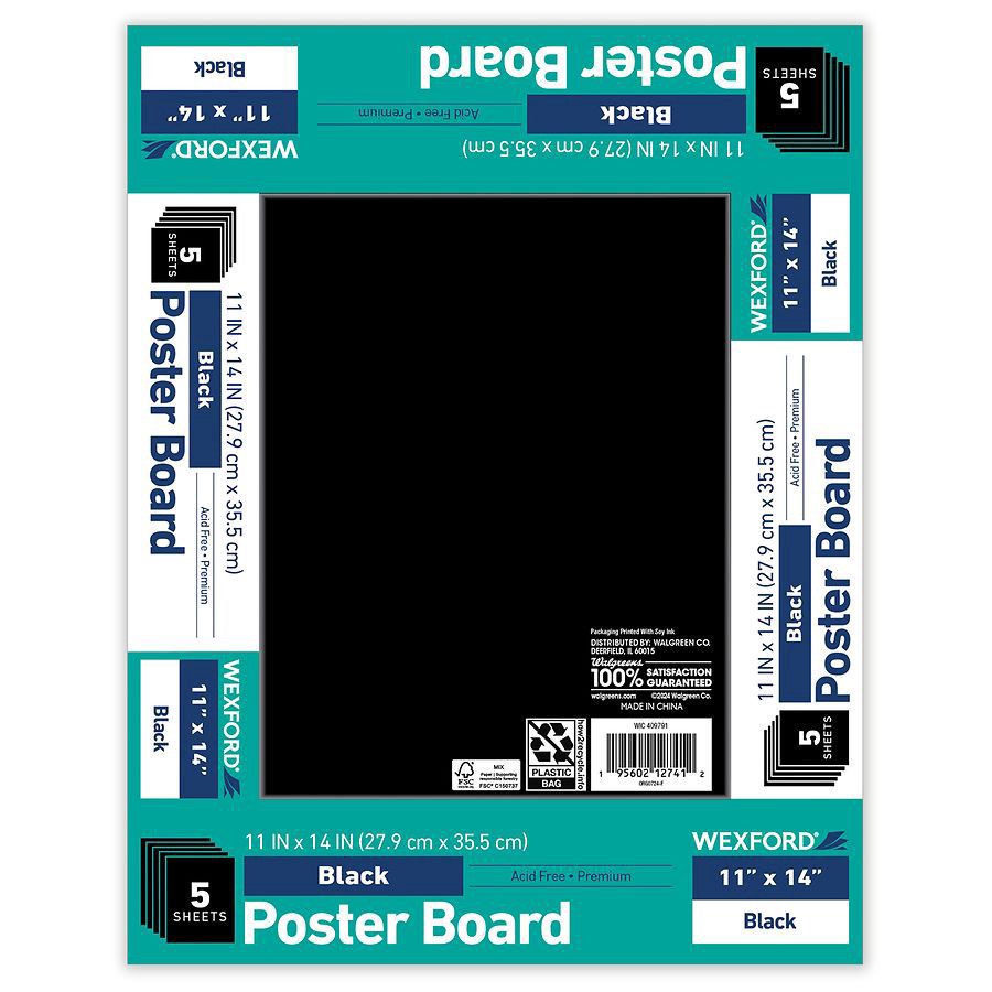 slide 1 of 1, Wexford Posterboard - Black, 5 ct