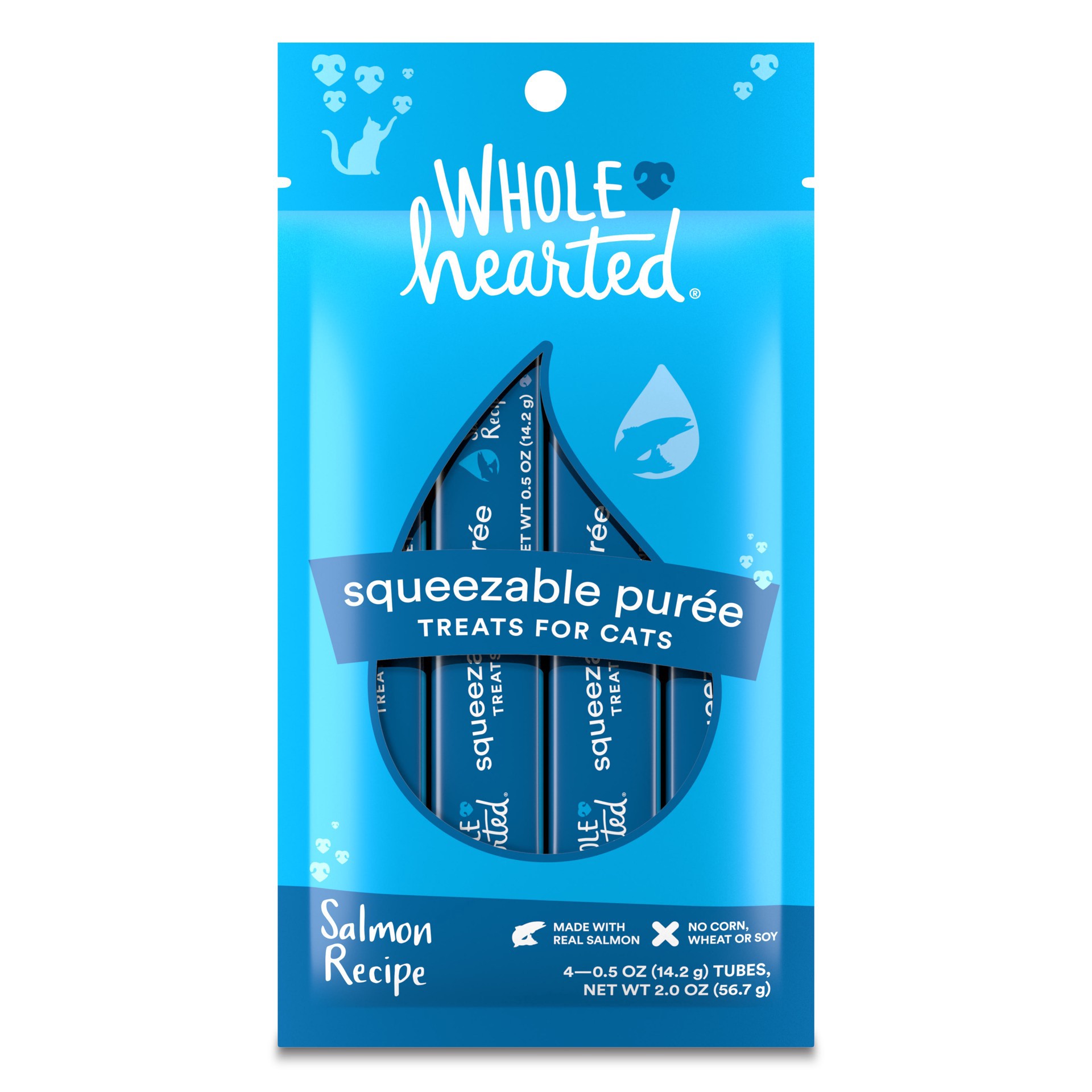 The Wholehearted Salmon Recipe Squeezable Puree Cat Treat brings you closer to your feline with a tube designed for delightful one-on-one time. Use it as an enticing way to top off their daily meals o…
