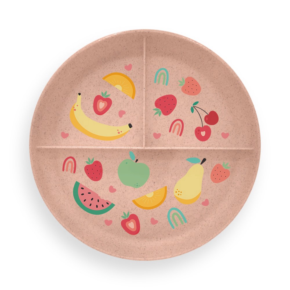 Wheat Pp Divided Plates Coral Happy Fruit