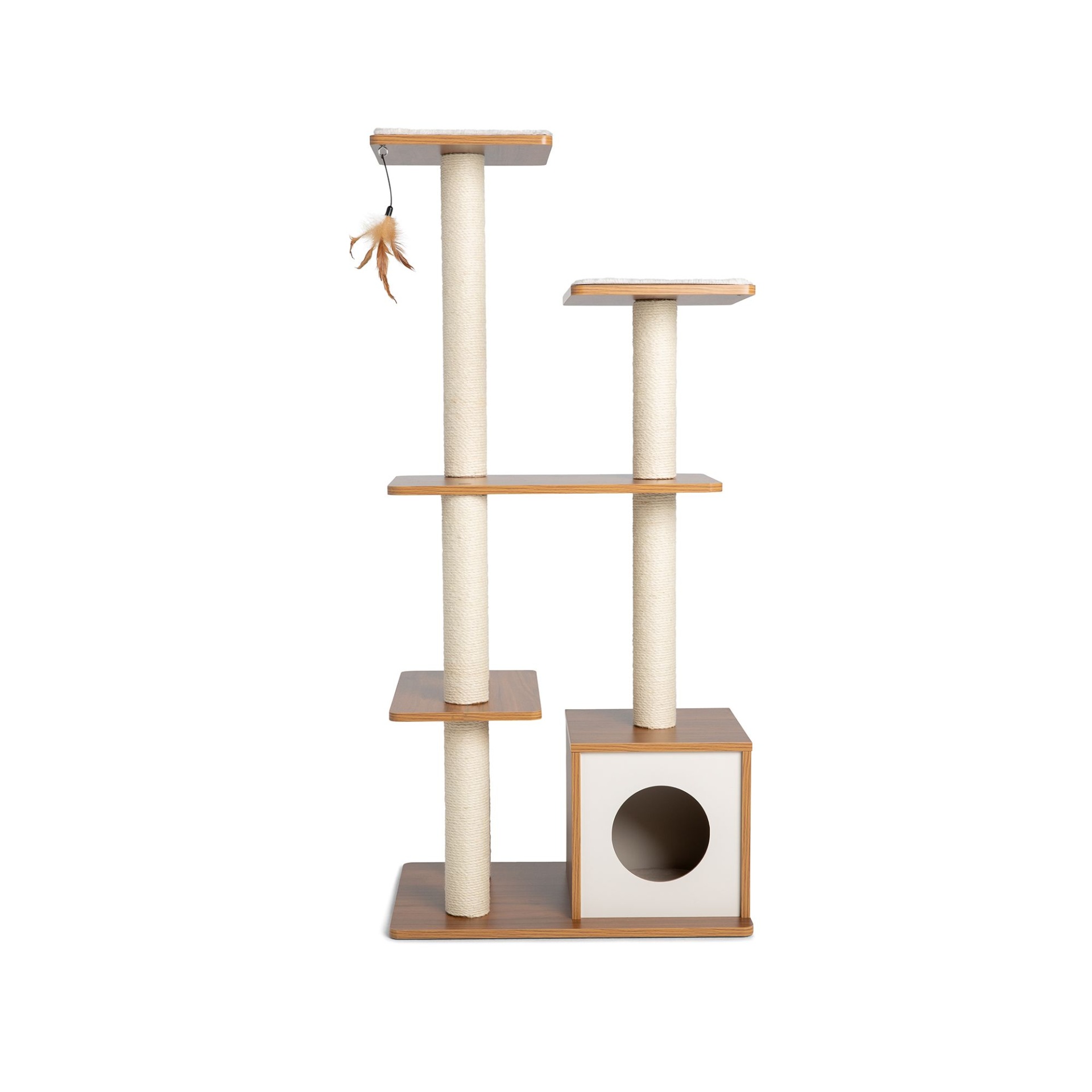 Whisker City 52-in Wood Plank with Condo Cat Tree, White & Tan