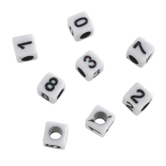 White Number Acrylic Cube Beads, 5mm By Bead Landing