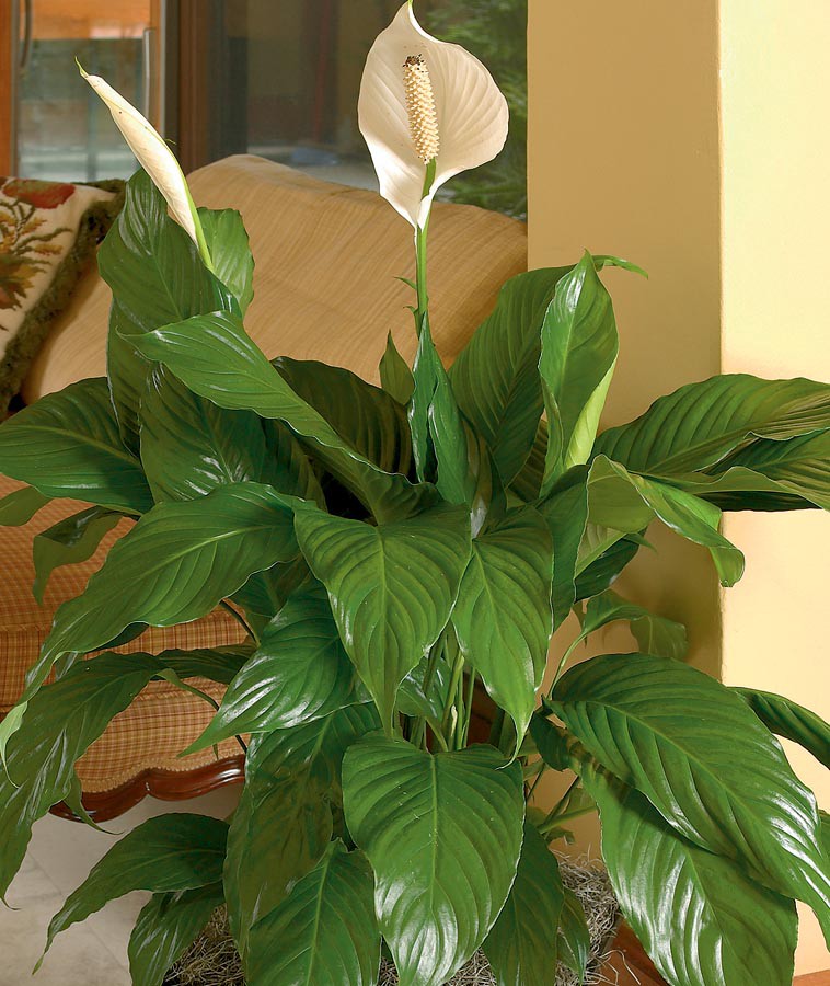 Snowy white flowers. Ideal plant to use as a focal point. Does well on a shaded patio. Air purifier.