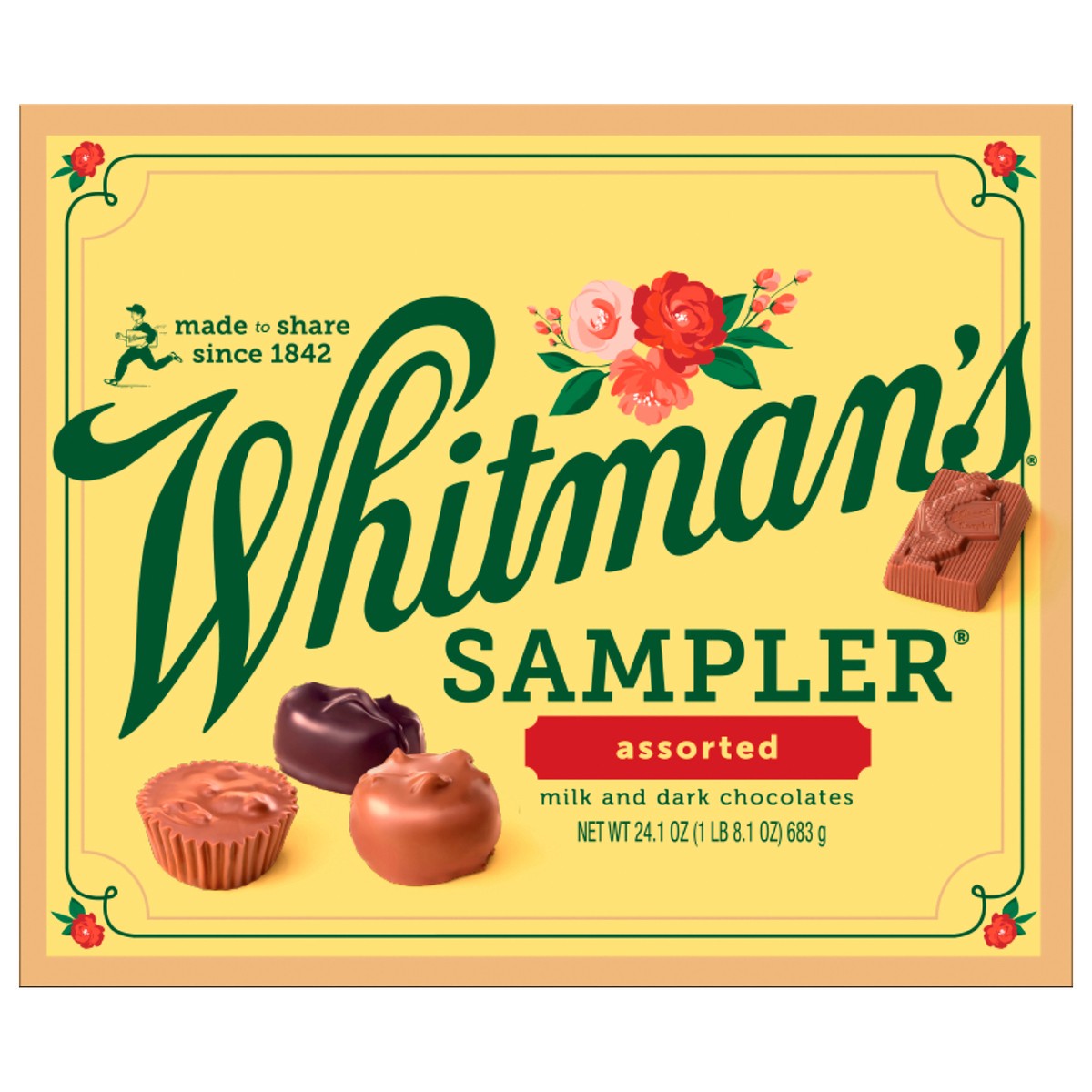WHITMAN'S SAMPLER Assorted Milk Chocolate Gift Box, 24.1 oz., makes a perfect gift for friends or family! Our 50 piece assortment of 11 unique flavors features: milk chocolate peanut cluster, milk cho…
