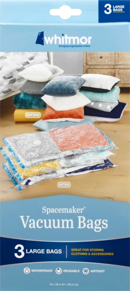 Whitmor's improved Spacemaker® vacuum bags have a durable multi-layer construction for maximum use and reuse. The zipper slider has been improved to slider prevent it from sliding off when sealing the…