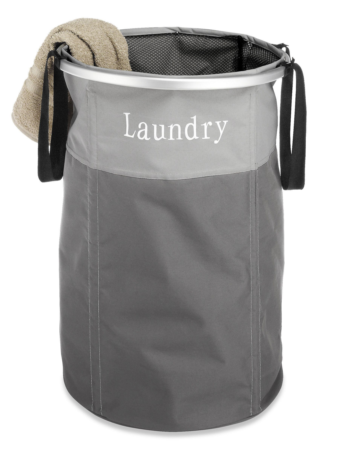 Whitmor Real Home KD Folding Laundry Hamper Grey and Natural Color