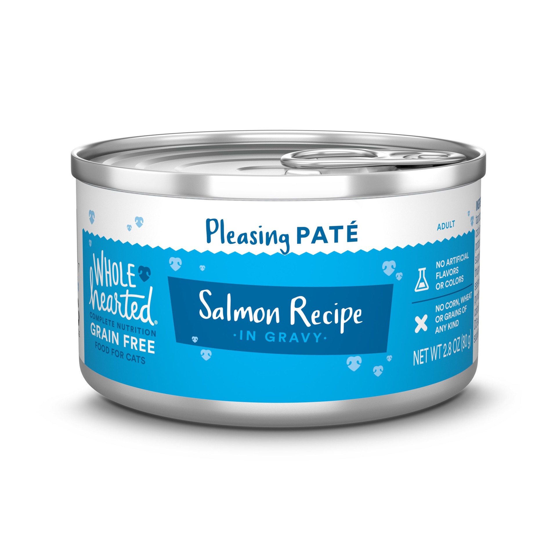 Grain Free Salmon Recipe Pate Adult Wet Cat Food from WholeHearted. No Artificial Colors Added. No Corn, Wheat, Soy, or Grains of Any Kind. Contains Omega-3 and Omega-6 Fatty Acids to Support Skin and…