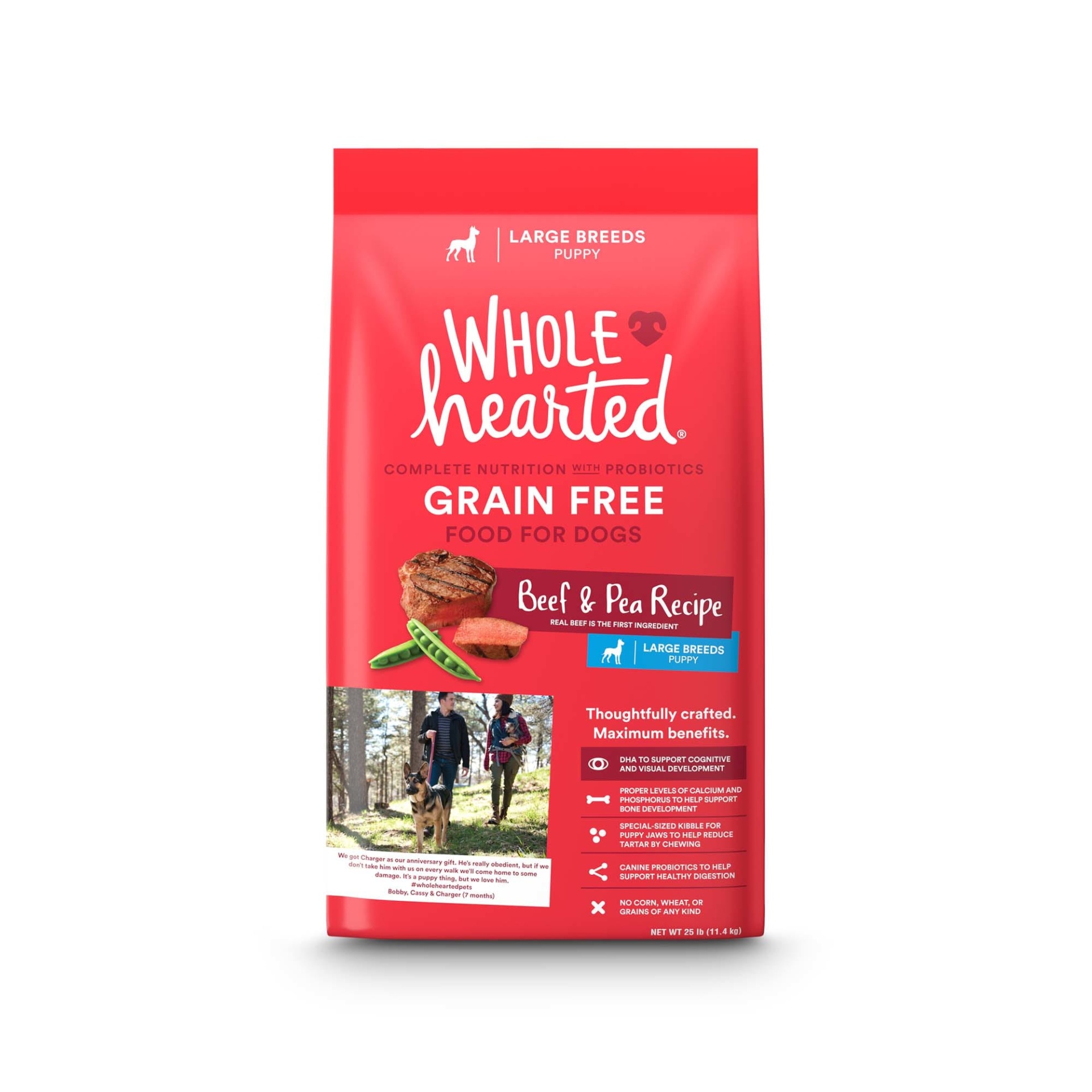 The WholeHearted Large Breed Beef & Pea Recipe Dry Puppy Food feeds their appetite for rich, meaty flavors as well as their need for complete nutrition with a bowlful of nutrients made to help you con…