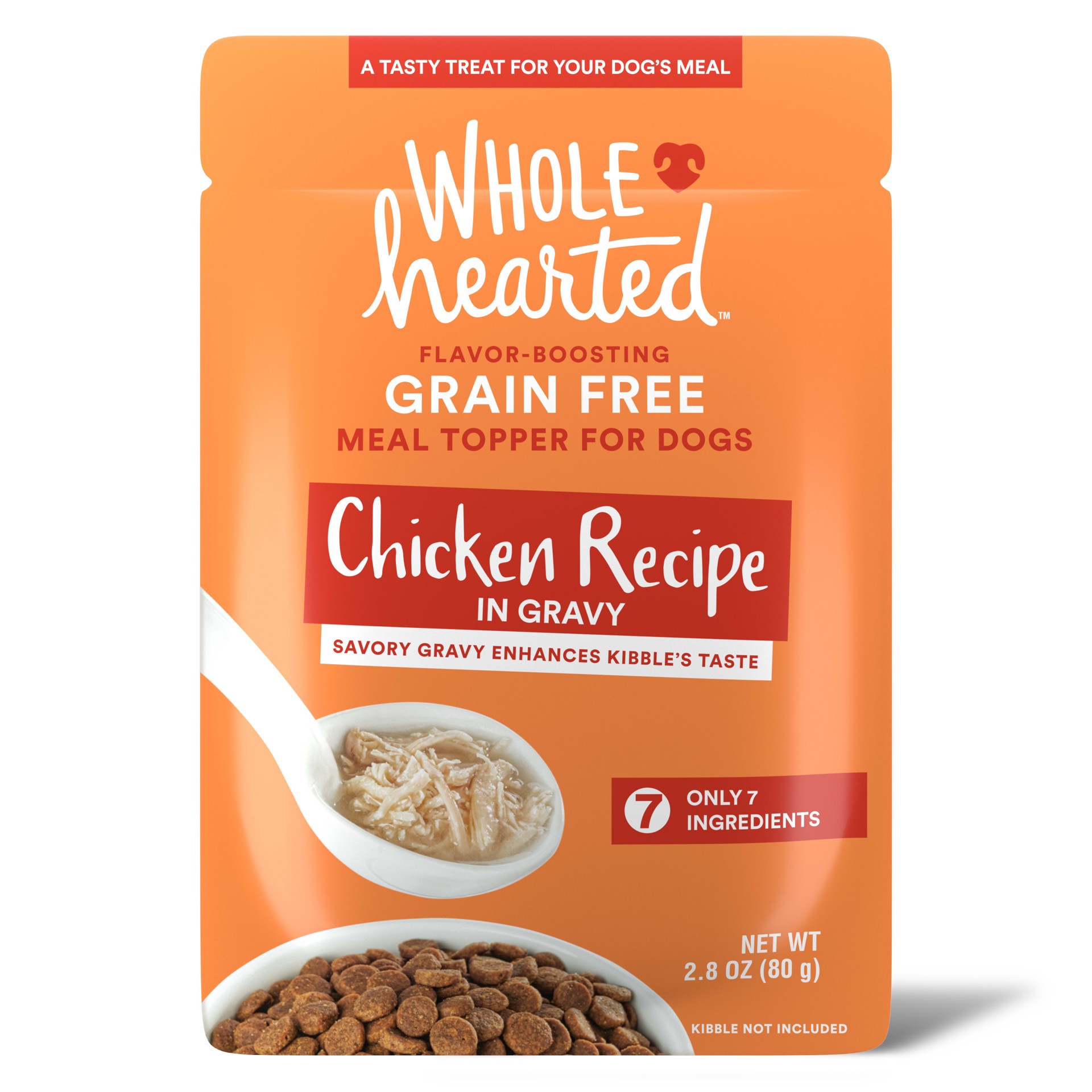 The WholeHearted Chicken Recipe in Gravy Dog Meal Topper pleases those picky four-legged eaters with a delectable taste of poultry. Mix this topper into their kibble to make every meal a little more s…