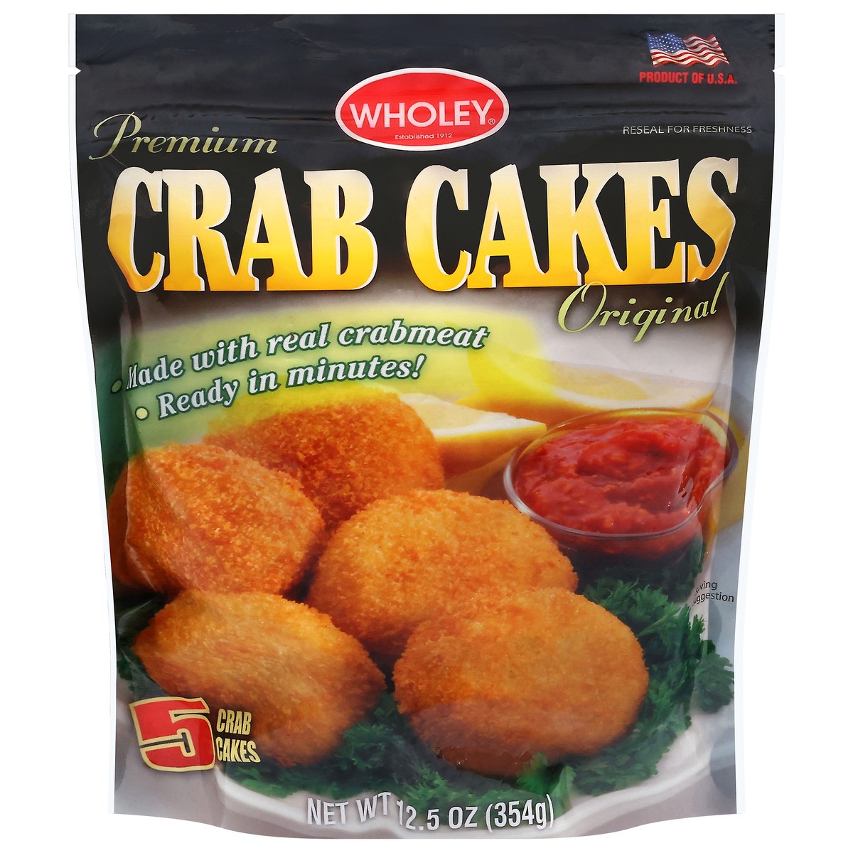 Established 1912. Made with real crabmeat. Ready in minutes! 5 crab cakes. These Wholey Original Crab Cakes are made with real crabmeat and ready in minutes, making them a perfectly delicious appetize…