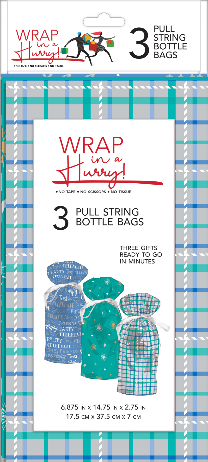 Featuring 3 different fun everyday themes, this Wrap-In-a-Hurry reusable bottle gift sack pack is a fast and easy way to wrap your gifted beverage and wine bottles. Simply stuff, and pull included theā¦