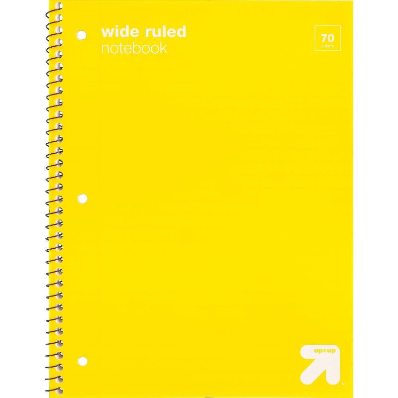 Wide Ruled Yellow 1 Subject Flexible Plastic Cover Spiral Notebook - up&up™: 70 Pages, 3 Hole Punched, Tween, 7.5x10.5"