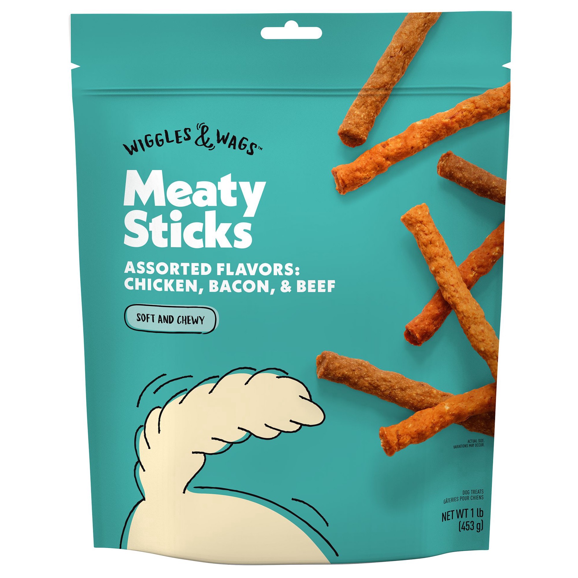 Wiggles & Wags Chicken, Bacon, Beef Meaty Sticks Dog Treats 16 OZ