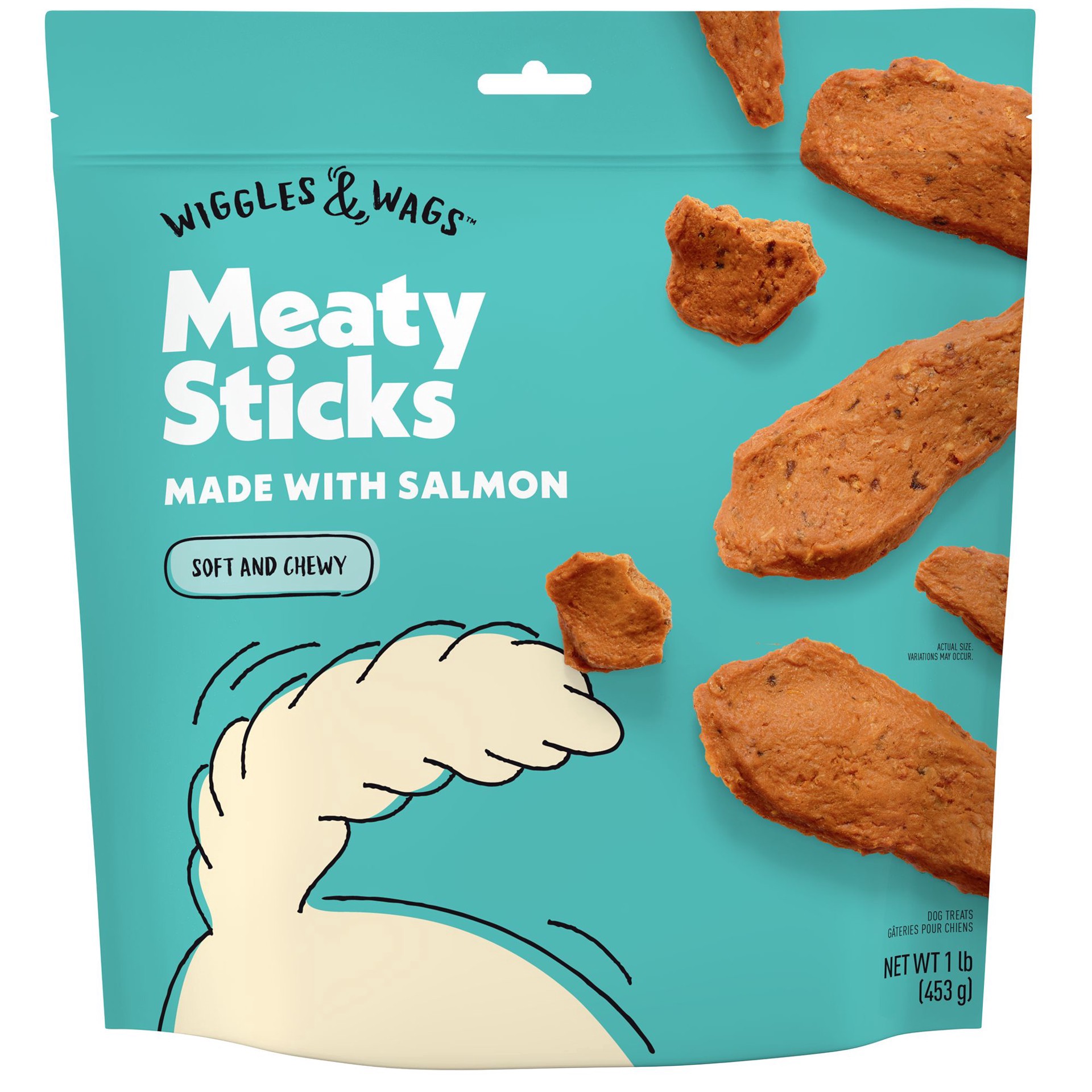 slide 1 of 1, Wiggles & Wags Salmon Meaty Strips Dog Treats 16 OZ, 16 oz