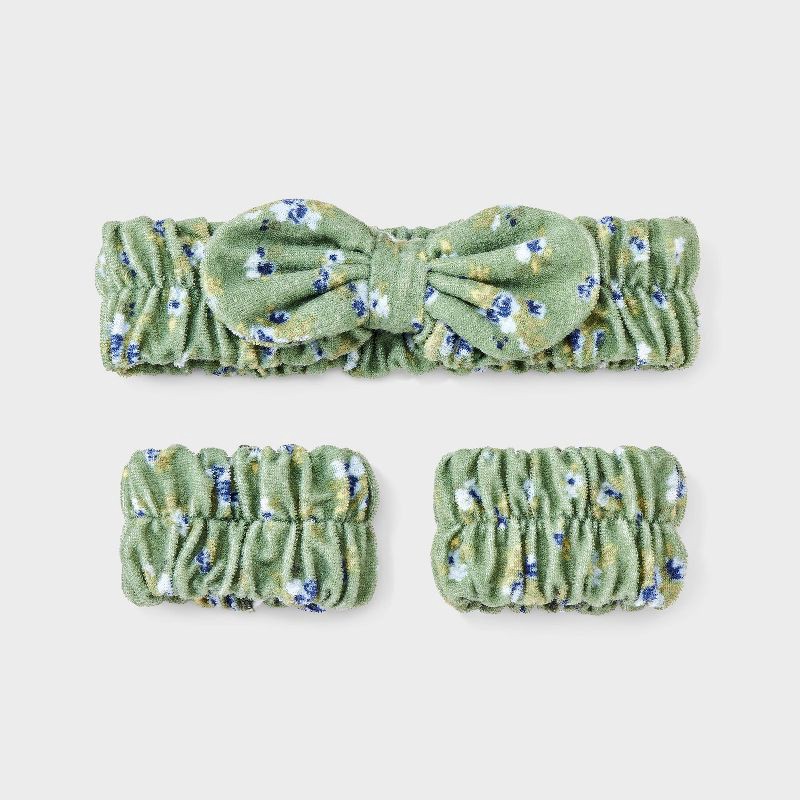 Green hair headwrap and cuffs set from Wild Fable™ covered with floral print is great for everyday use. Made of soft fabric for comfort. Perfect for securing and styling all types of hair. If you're n…