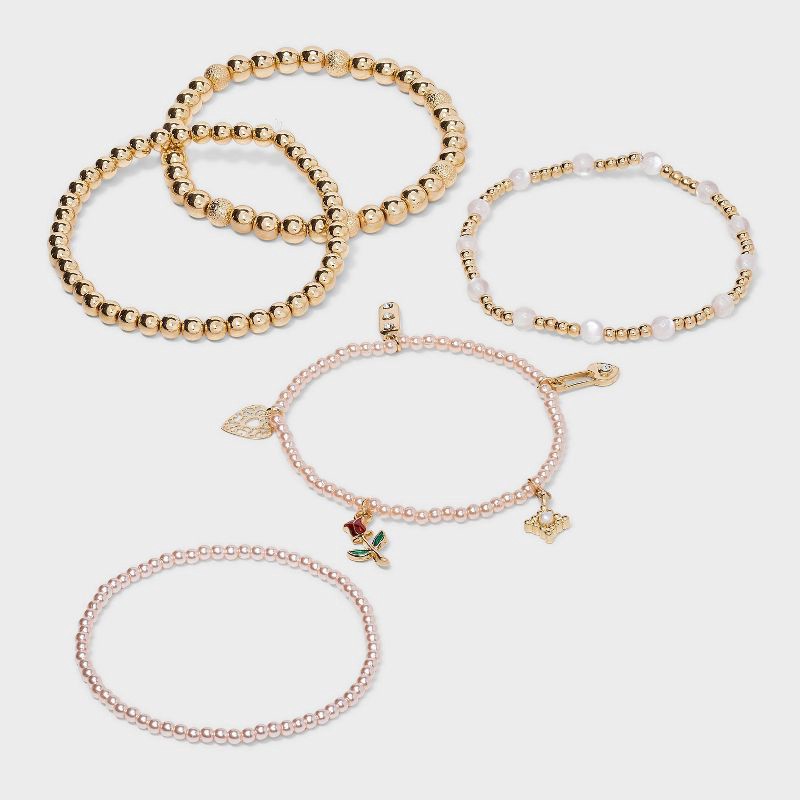 5-Piece bracelet set includes varying designs. Made of gold-tone and mixed beads. Pull-on style for a nice fit. Great to wear together or as solo pieces.If you're not satisfied with any Target Owned B…
