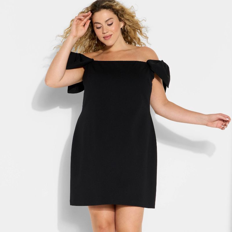 Mini A-line dress from Wild Fable™ in a solid shade with an off-the-shoulder neckline and bow-style short sleeves. Made of a lightweight fabric blend of rayon, nylon and spandex for all-day comfortabl…
