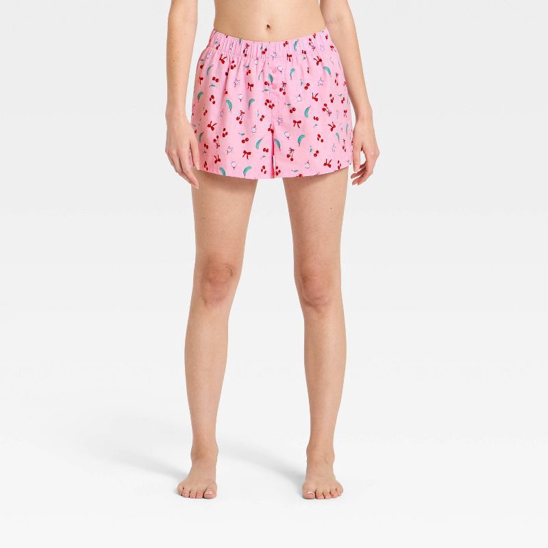 slide 1 of 3, Women's Boxer Pajama Shorts - Wild Fable™ Pink Ornaments XXL, 1 ct