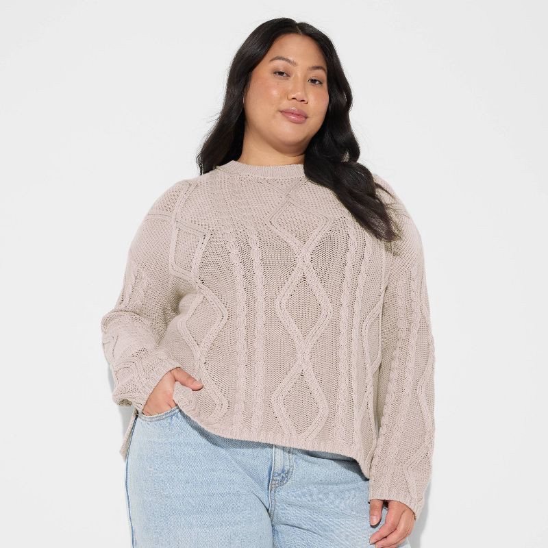Crewneck sweater from Wild Fable™ featuring cable-knit detailing. Made of heavyweight 100% cotton fabric with a side slit for cozy comfort. Pullover style allows easy on and off.If you're not satisfie…