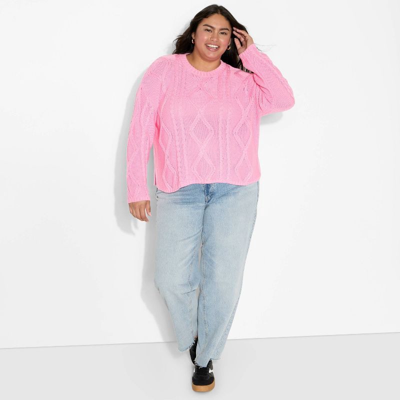 Women's Crewneck Cotton Cable Pullover Sweater - Wild Fable™ Vibrant Pink XXL