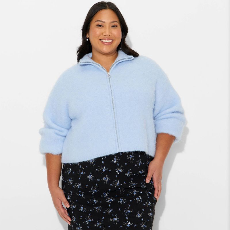 Jacquard-knit long-sleeve cardigan from Wild Fable™. Made from a fabric blend of recycled polyester, nylon, wool, and spandex to keep you warm and comfy. Tailored in a standard fit with a mid-length h…