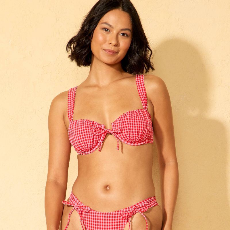 slide 4 of 5, Women's Gingham Seersucker Center Tie Underwire Bikini Top - Wild Fable™ Red/Pink M, 1 ct