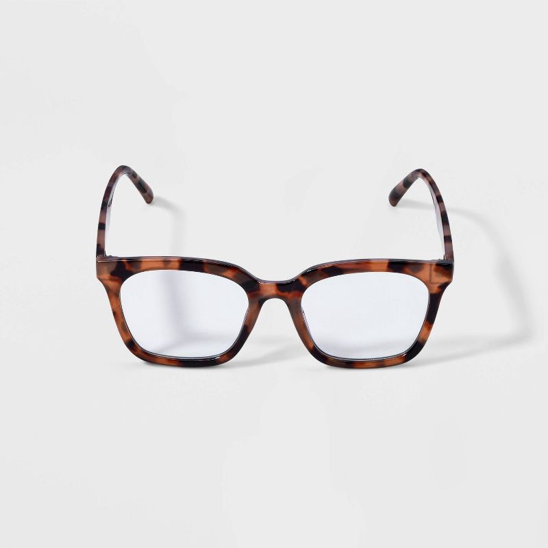 Plastic square sunglasses from Wild Fable™ with a brown tortoiseshell-pattern frame. Full-rim plastic frame with clear lenses featuring blue light-filtering and UV-protection properties to help ease e…