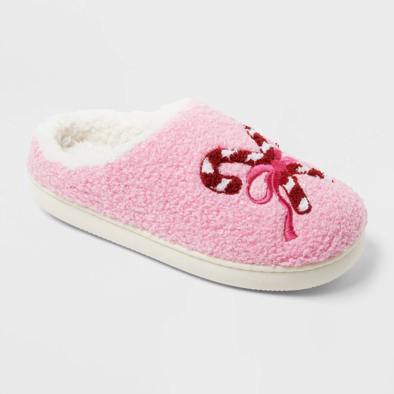 Shona scuff slippers from Wild Fable™. Feature a faux-shearling upper with front embroidered accent, faux-fur insole and lining for all-day comfort. Easy slip-on design with an open back allows for ef…