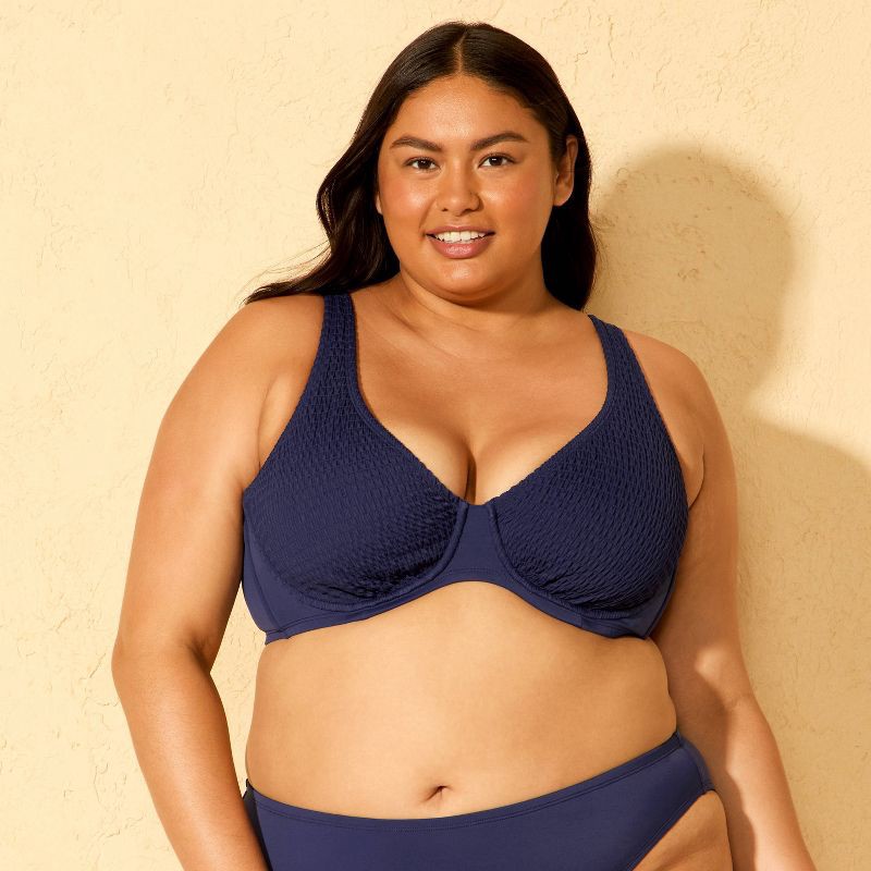 Tricot underwire bikini top from Wild Fable™ with smocked texture. Features adjustable shoulder straps for a personalized fit. Made from nylon fabric with spandex for flexible comfort in and out of th…