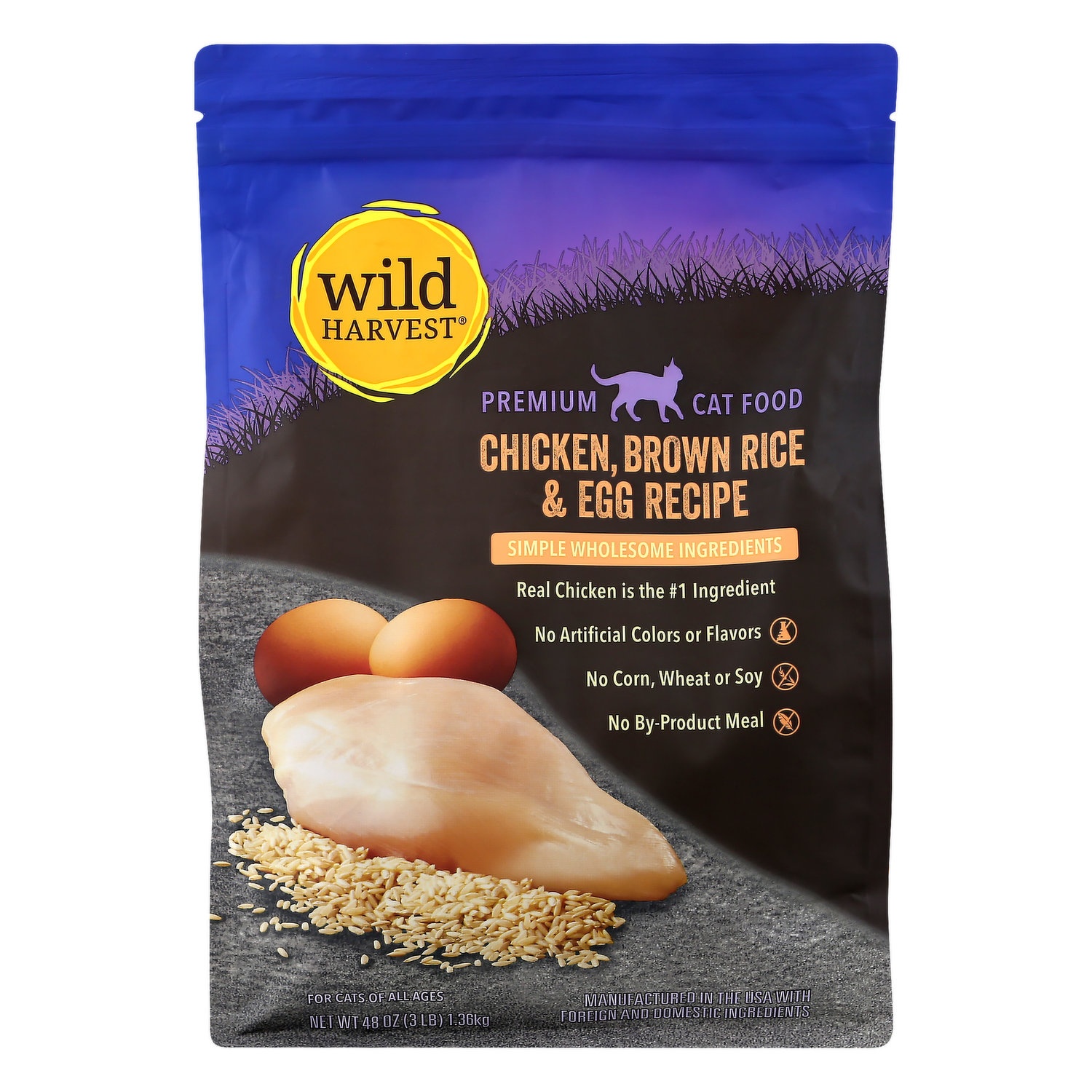 Wild Harvest Cat Food, Premium, Chicken, Brown Rice & Egg Recipe, 48 Ounce