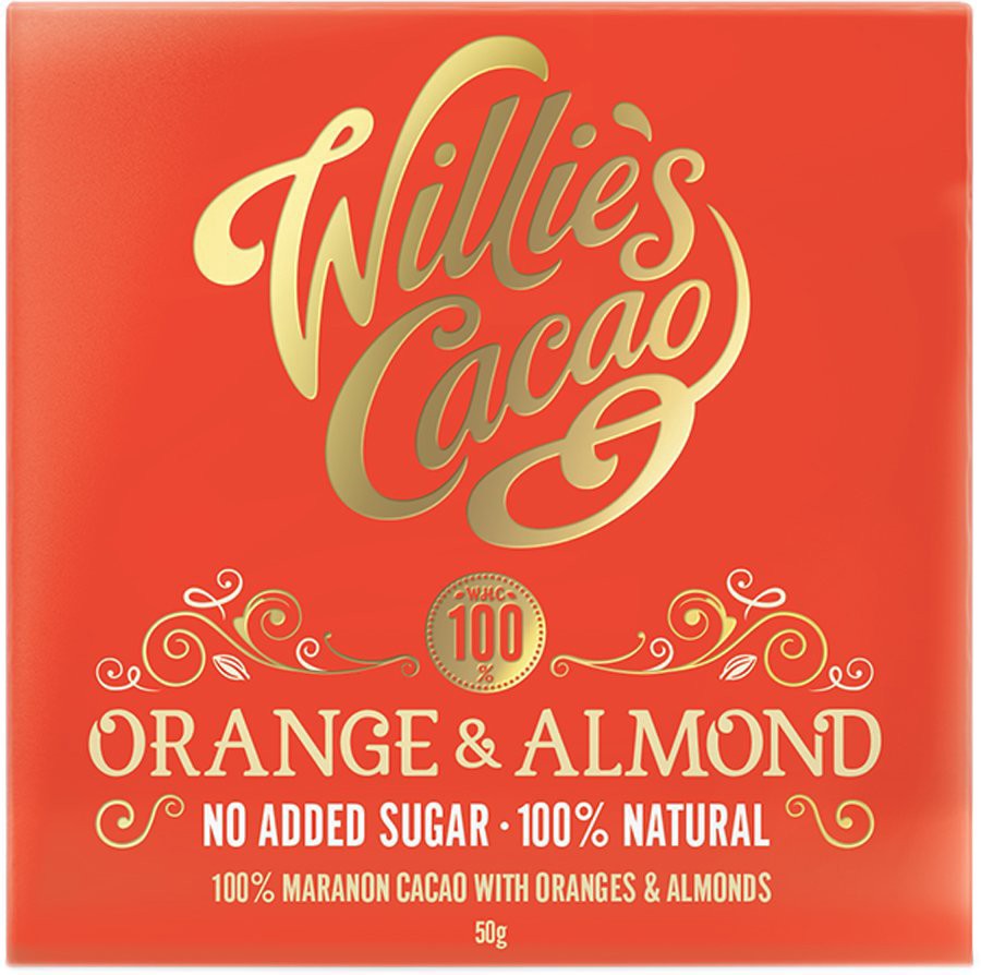 This softly floral Rio Maranon cacao dances in perfect harmony with the delicate orange. All the sweetness comes naturally from the almonds, simply sublime. I make all my chocolate from ‘bean to bar’ …