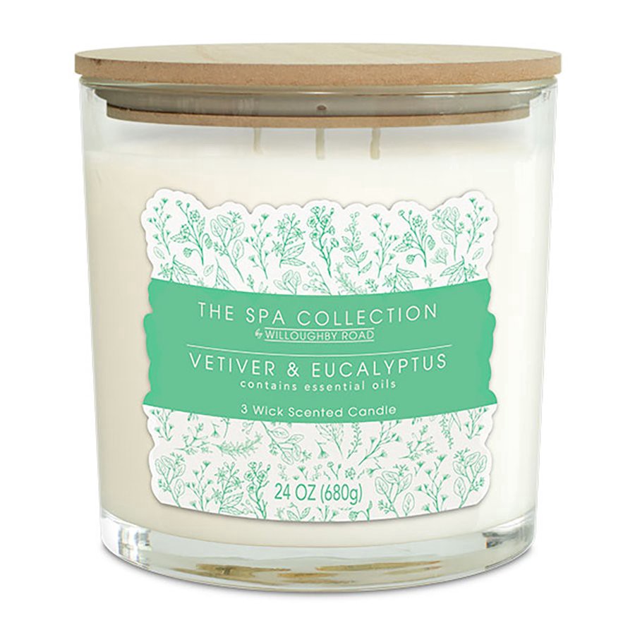 Willoughby Road The Spa Collection Vetiver & Eucalyptus Scented 3 Wick Candle, 24 oz