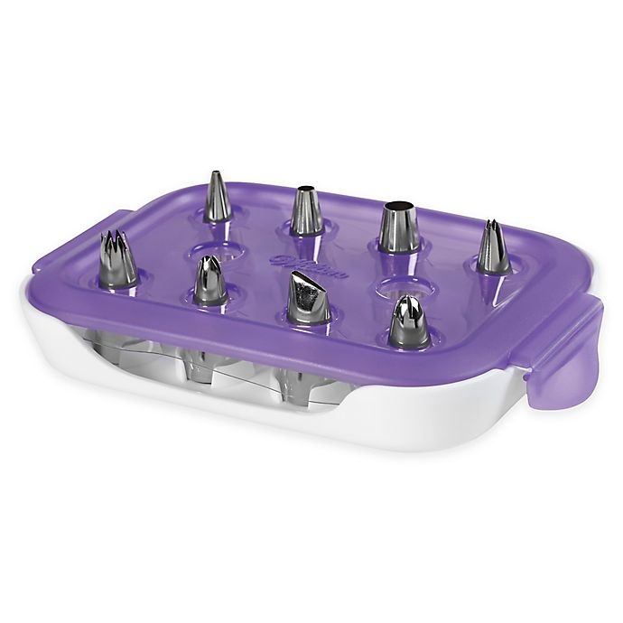 Decorate cupcakes, cookies, cakes and more with the Wilton 9- Pc. Starter Decorating Tip Set. With three sizes of round tips (3, 8 and 12), you can write, make multi-sized dots and make lines in fine,…