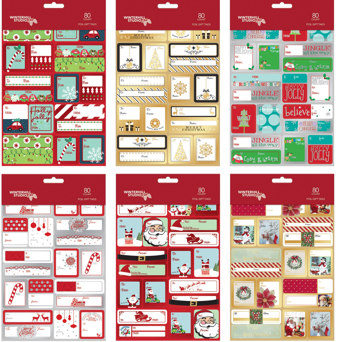 Winter Hill Studios Foiled Peel and Stick Gift Tags, 80 Count, Assorted