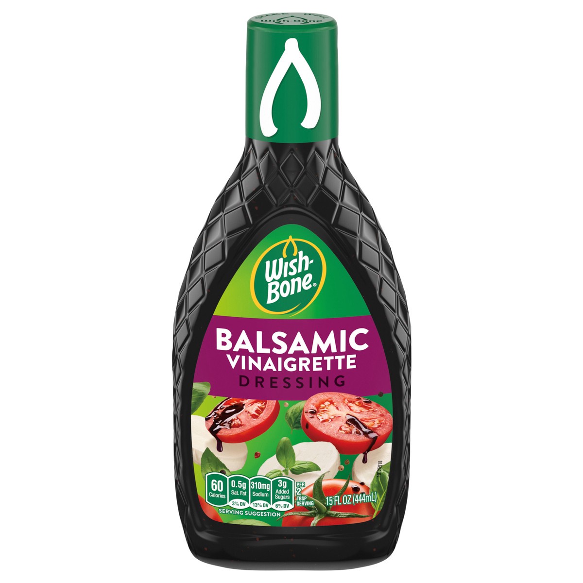 Wish-Bone Balsamic Vinaigrette Dressing adds indulgent flavor to all your favorite recipes. Made with balsamic vinegar, a robust blend of herbs and cracked pepper, and a splash of extra virgin olive o…