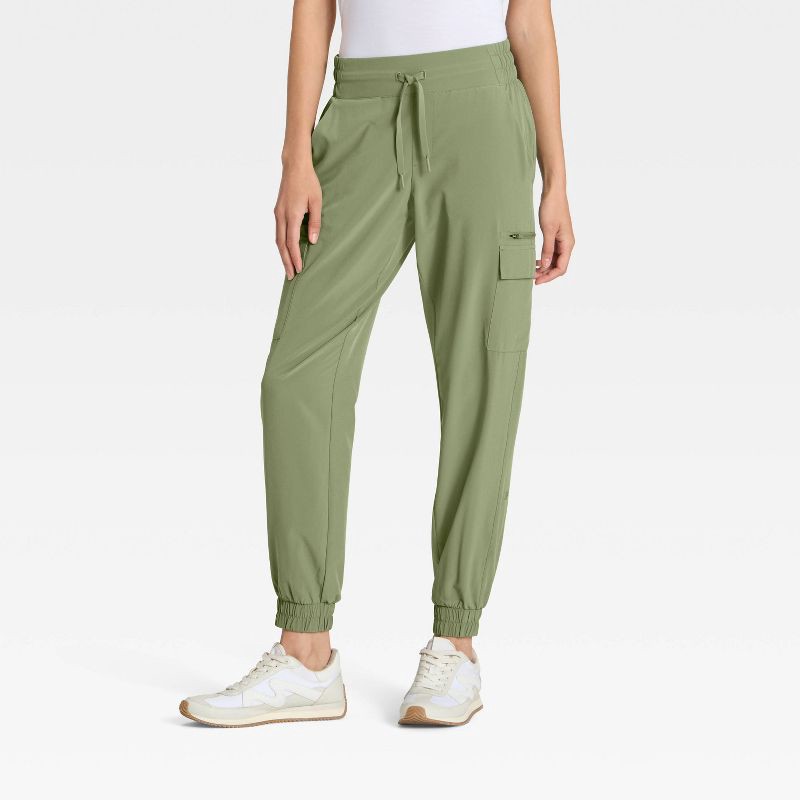 Women's Active Light Mid-Rise Cargo Jogger Pants - All In Motion™ Olive Green XXL