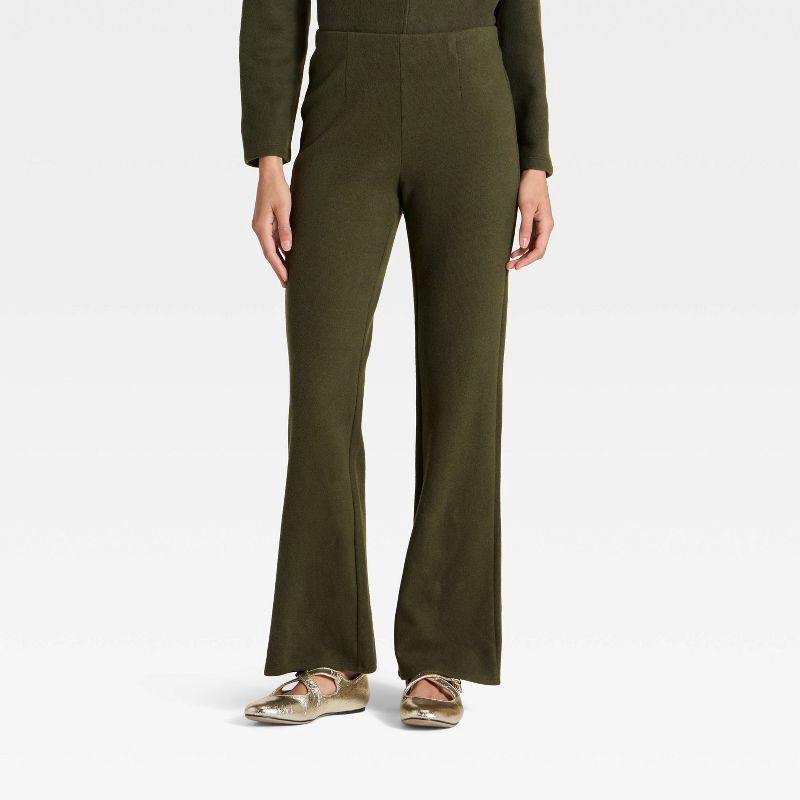 Women's Brushed Pull-On Pants - A New Day™ Olive L