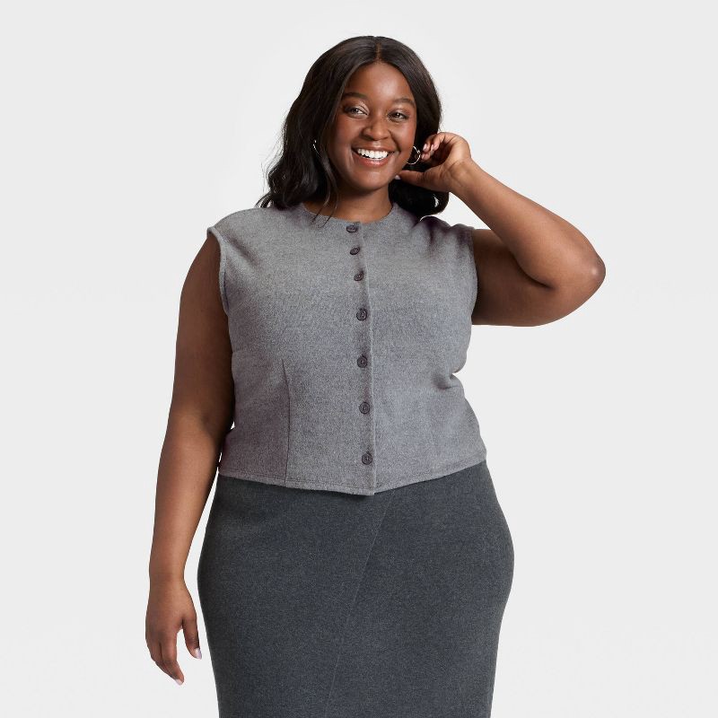 Bring a touch of sophistication to your wardrobe with this Brushed Interlock Vest from A New Day™. Made from cotton-recycled polyester blend fabric, this sleeveless vest feels provides all-day comfort…