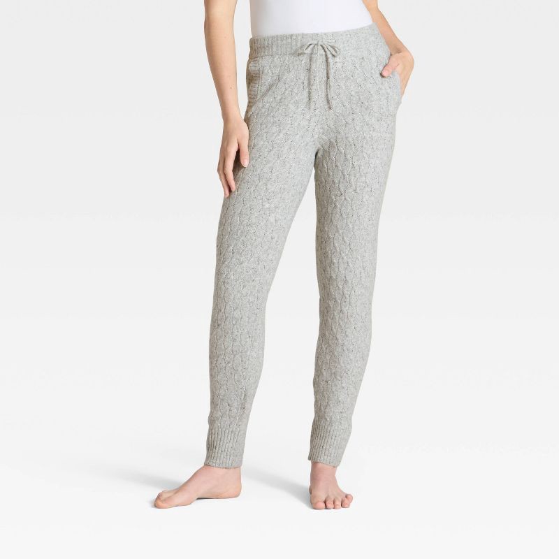Women's Cashfeel Cable Knit Jogger Pants - Auden™ Heather Gray XL